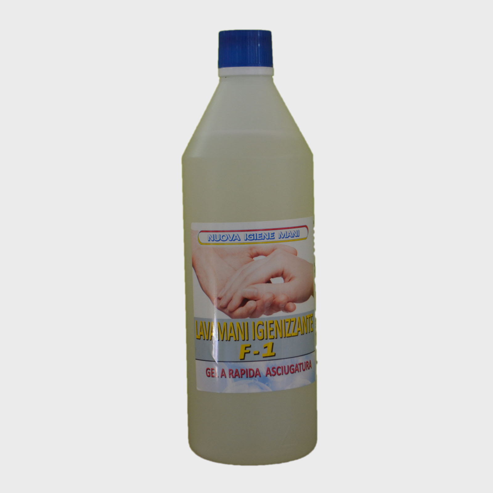NUOVA IGIENE MANI F-1 è un detergente sanificante a base di alcool etilico, formulato appositamente per sanitizzare a fondo la pelle delle mani e non necessita di risciacquo. Si asciuga rapidamente lasciando le mani morbide, fresche e piacevolmente profumate.